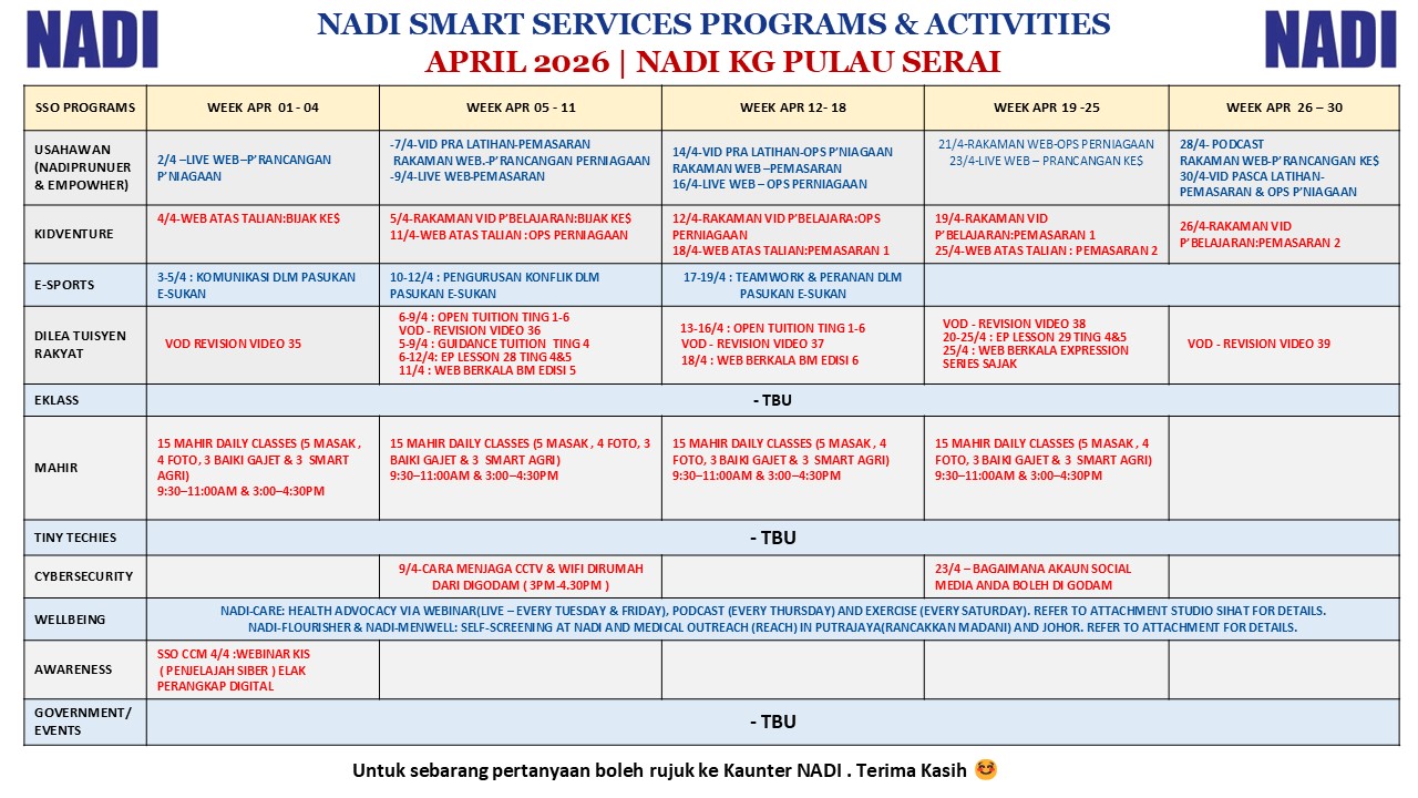 3. Penggunaan tambahan melebihi jam pertama tertakluk kepada budi bicara staf NADI, bergantung kepada ketersediaan